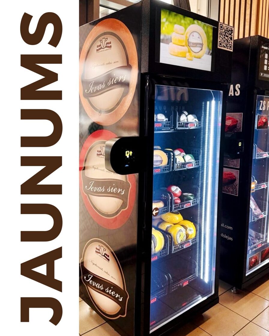 Ievas siers pašapkalpošanās ledusskapis Imantas tirgū (Rīga, Kurzemes prospekts 3).